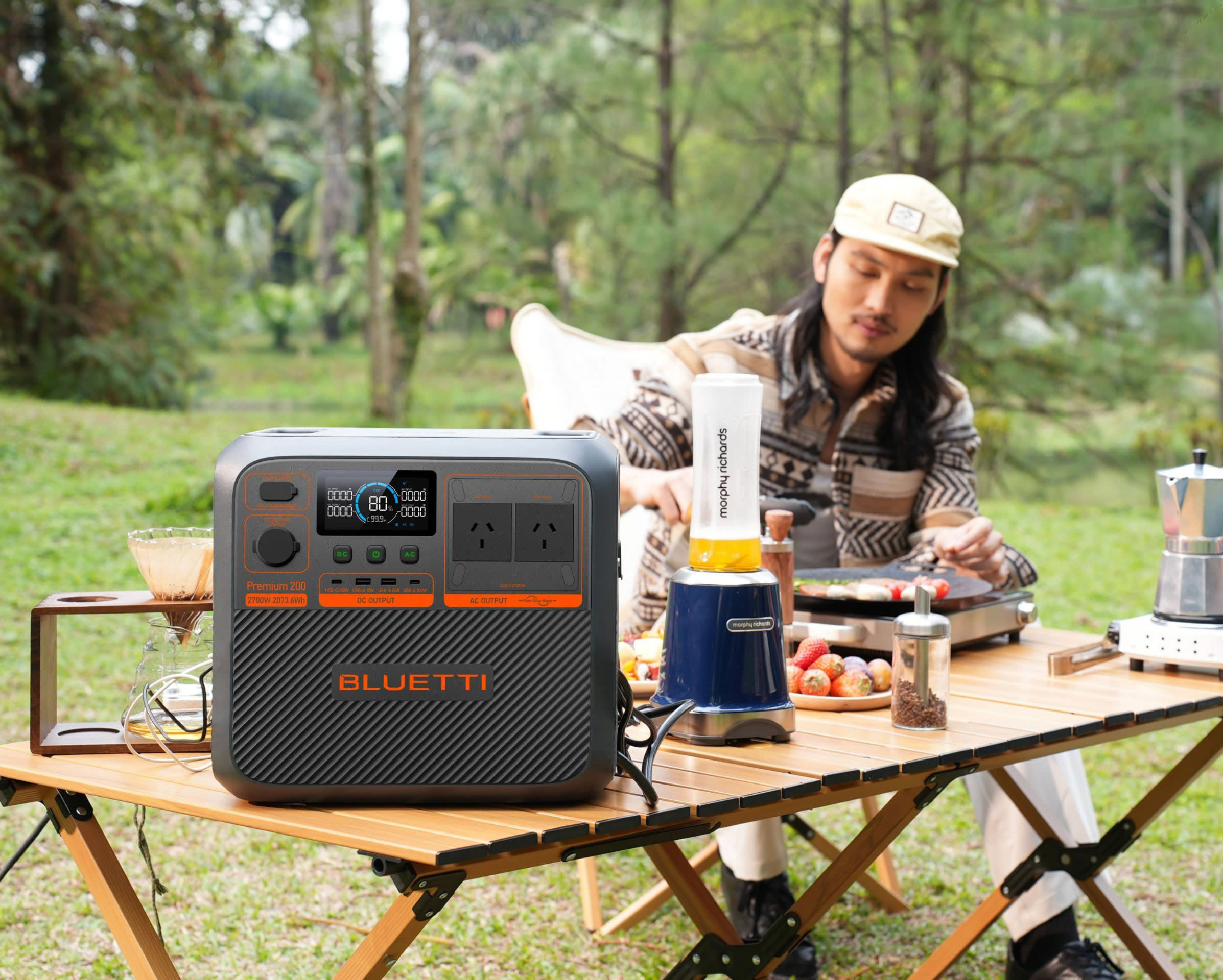 Com um design ultracompacto (35 × 25 × 32,3 cm) e empilhamento de células sem gaps, a estação maximiza o uso do espaço sem comprometer a potência. A BLUETTI Premium 200 V2 suporta cargas resistivas pesadas de até 4.050W, perfeita para eletrodomésticos exigentes como aquecedores, secadores e fornos portáteis.