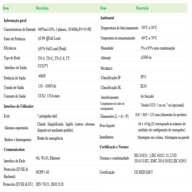 i9Charge DC Evolution-Series DC40 (2 X CCS2 5mts) 40Kw ou (20Kw+20Kw) RFID + OCPP + Wi-Fi + LAN